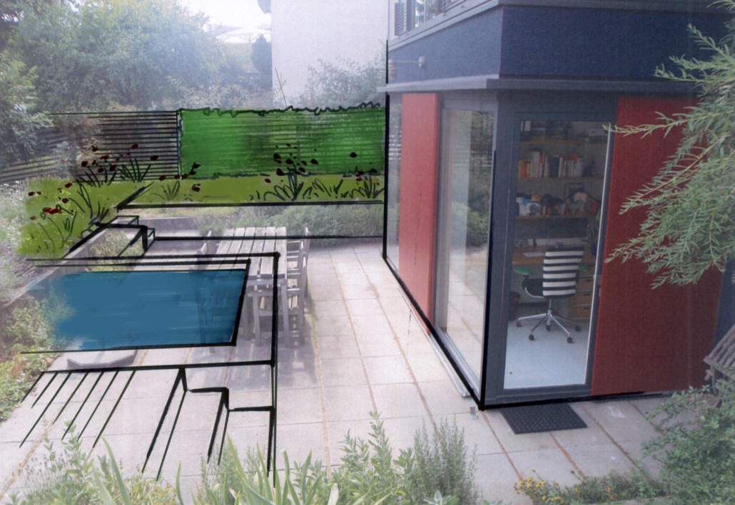 Das Wohnhaus wurde im Bauhaus-Stil renoviert und umgebaut, dementsprechend sollte sich dieser klare Baustil auch im neuen Garten widerspiegeln.